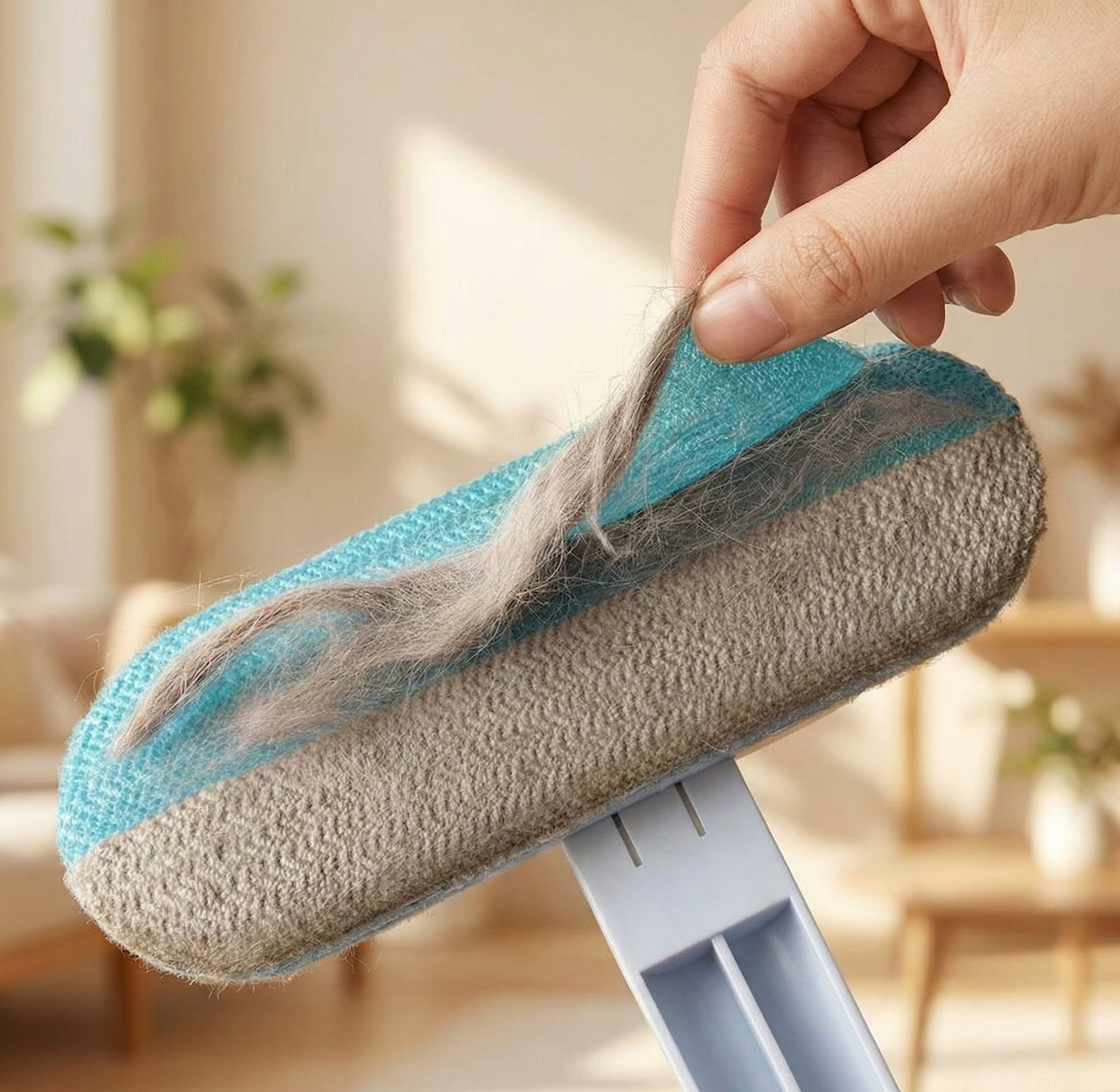 Precision-engineered bristles penetrate between fabric threads to extract "hair needles"—the stubborn embedded strands that vacuums push deeper.