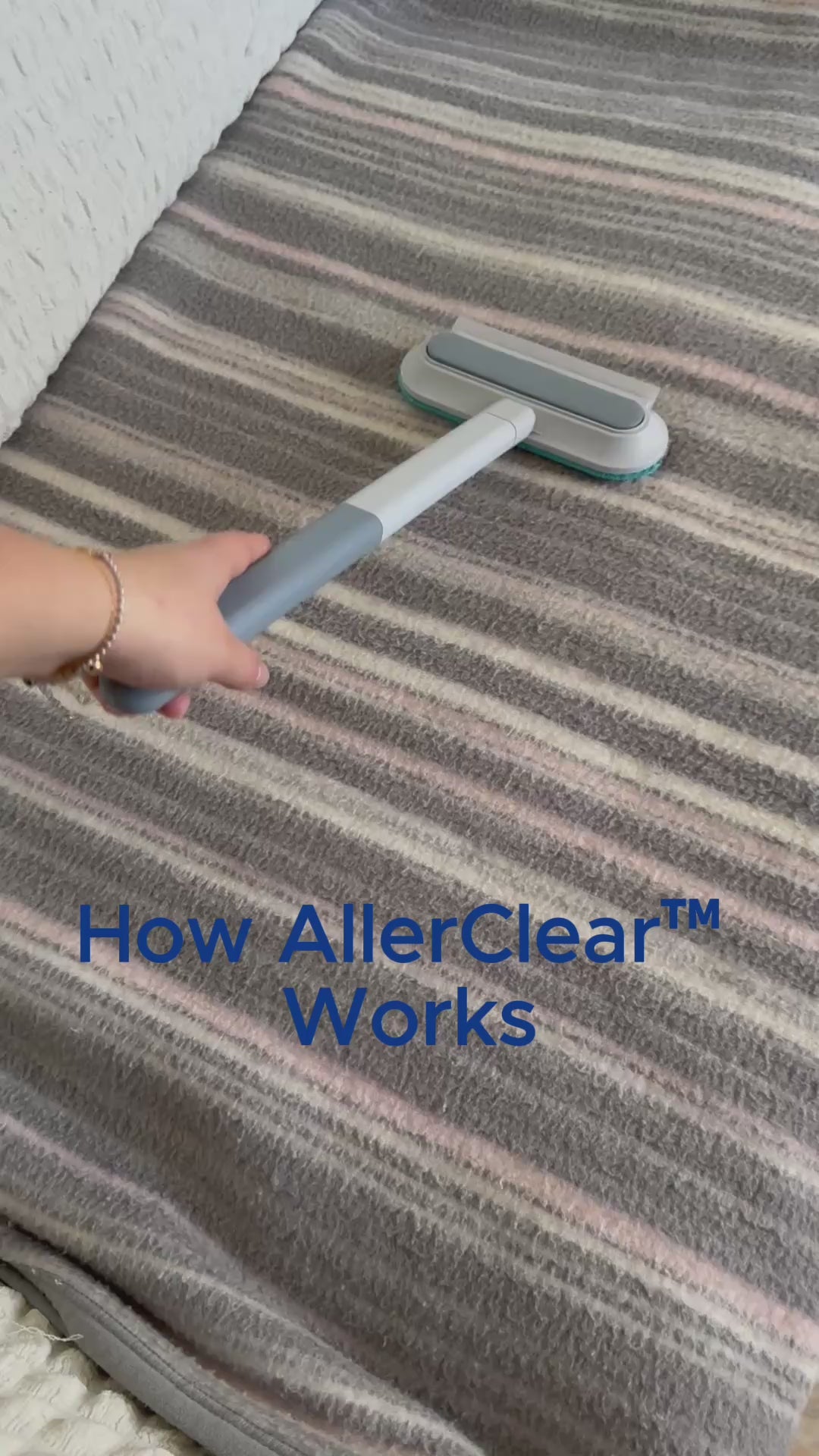 AllerClear™ works on virtually all fabric types: couches, carpets, car seats, bedding, curtains, clothing, and pet beds. The velvet-bristle technology adapts to different fabric textures while remaining gentle enough not to damage delicate materials.